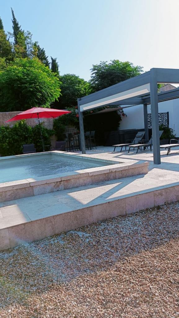– Douche à l’italienne, double vasques, toilette et sèche-cheveux